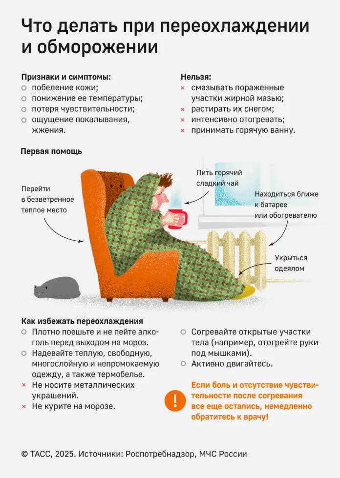 Специалист также предупреждает: ни в коем случае нельзя активно растирать обмороженные участки кожи. Такое механическое воздействие может повредить и без того ослабленные ткани. При подозрении на обморожение следует сразу обратиться за медицинской помощью и избегать попыток самостоятельного лечения.