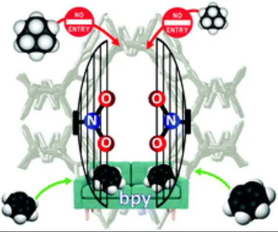 Новосибирские учёные создали "умные" пористые структуры на основе терефталатов. Эти МОК избирательно захватывают молекулы бензола при комнатной температуре, полностью исключая энергозатратные процессы. Каркасы работают по принципу молекулярного сита: их регулируемая пористость позволяет блокировать циклогексан.
