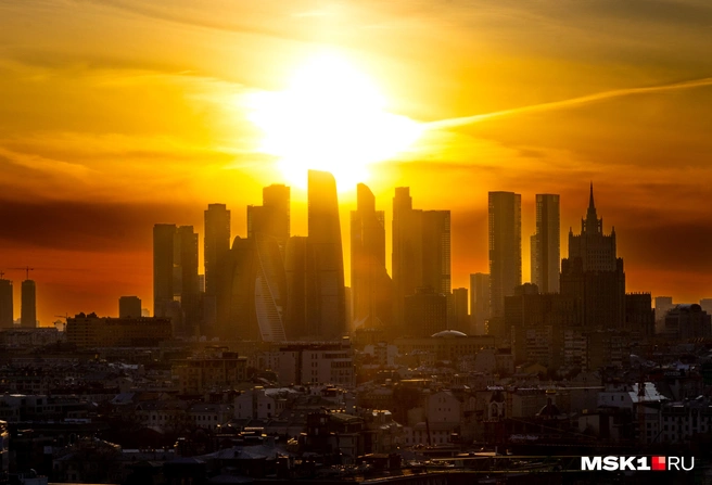 «Москва-Сити» в закатном солнце | Источник: Артем Устюжанин / MSK1.RU