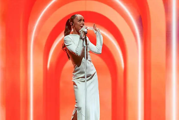 33 летняя артистка выбрала для церемонии Золотой граммофон элегантное белое макси платье с длинными рукавами от отечественного бренда Еdem couture. Стоимость этого предмета гардероба достигла 638 990 рублей.