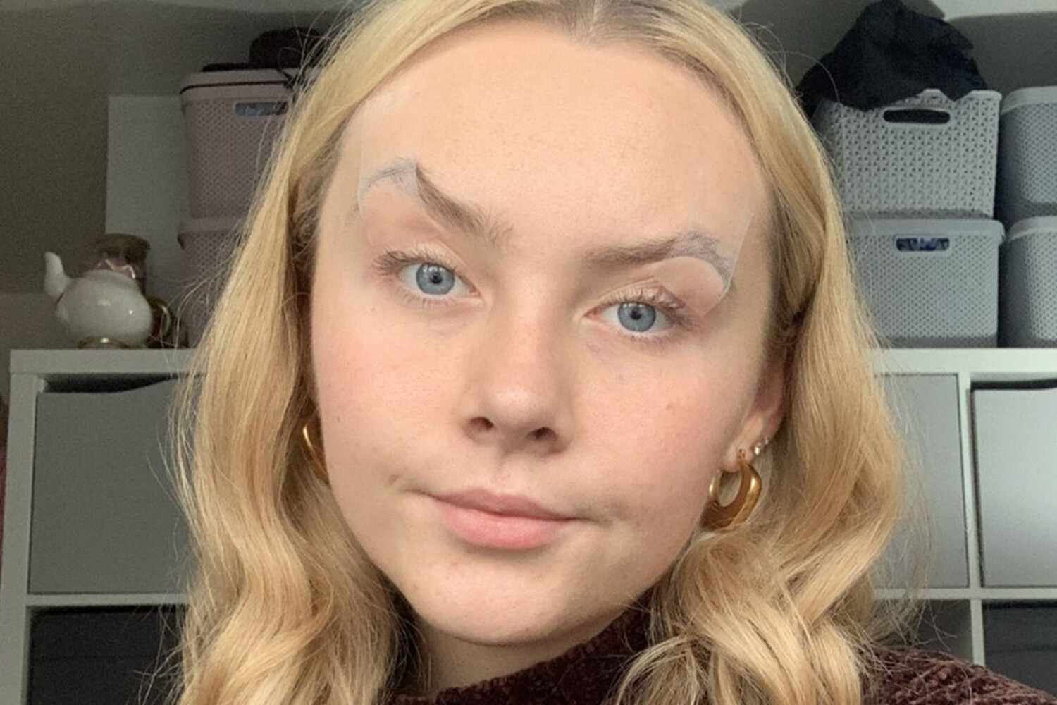 Женщина скотчем приклеивает веки, чтобы ее глаза не закрывались из-за редкого состояния